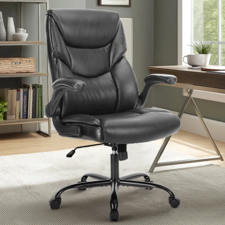 This classic black executive chair is a timeless choice for a home office that needs both comfort and a professional look. The sleek faux leather finish and supportive high-back design make it feel substantial without overpowering the space. It’s a reliable, everyday chair that still looks polished and intentional.