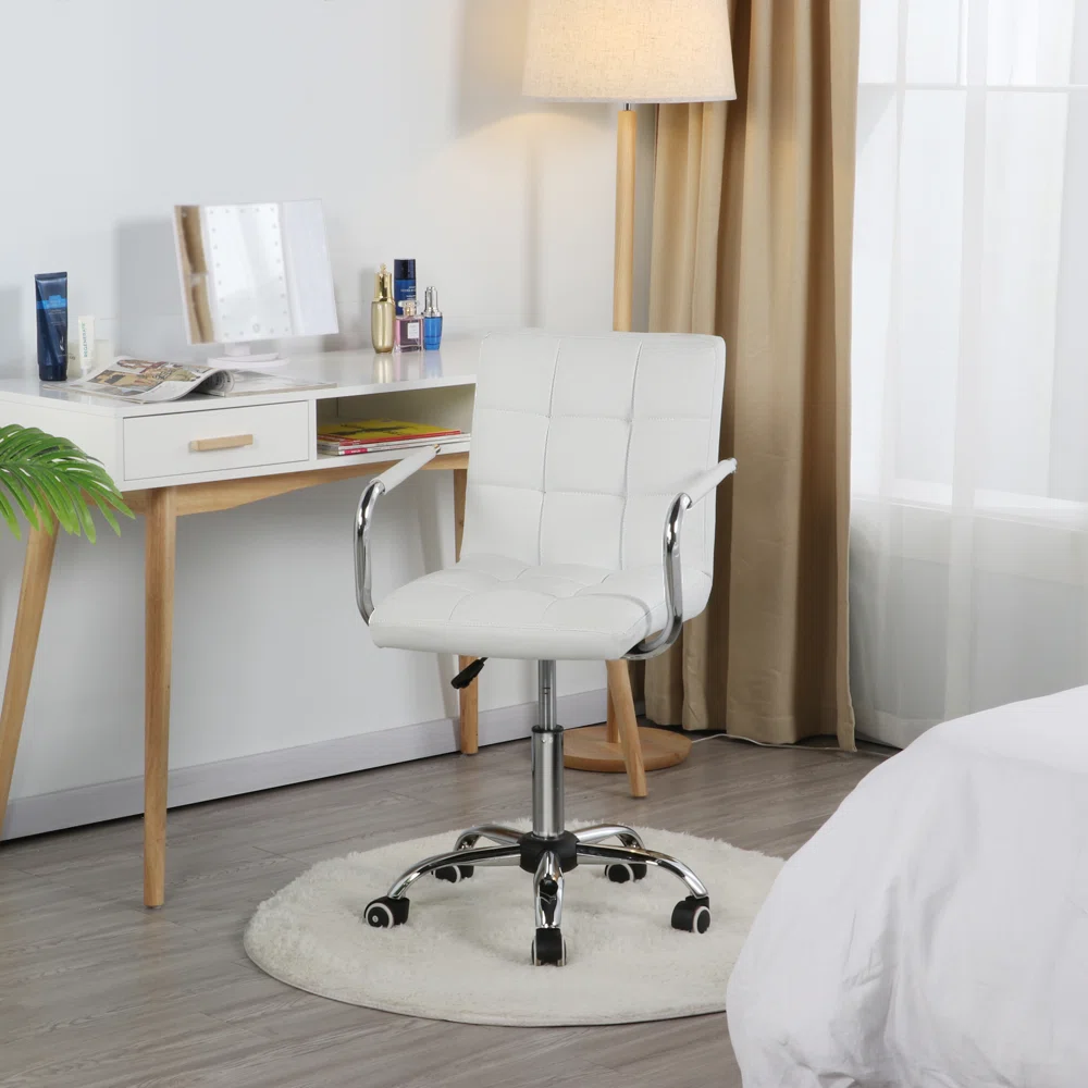 This light gray quilted office chair offers a clean, airy look that works beautifully in modern and neutral home offices. The softly padded seat and tailored stitching give it a refined feel, while the slim silhouette keeps the space feeling open and uncluttered.
