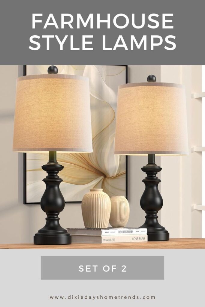 Place these lamps alongside neutral accents like textured vases or wood trays to let the black bases stand out as a statement piece in your farmhouse design.